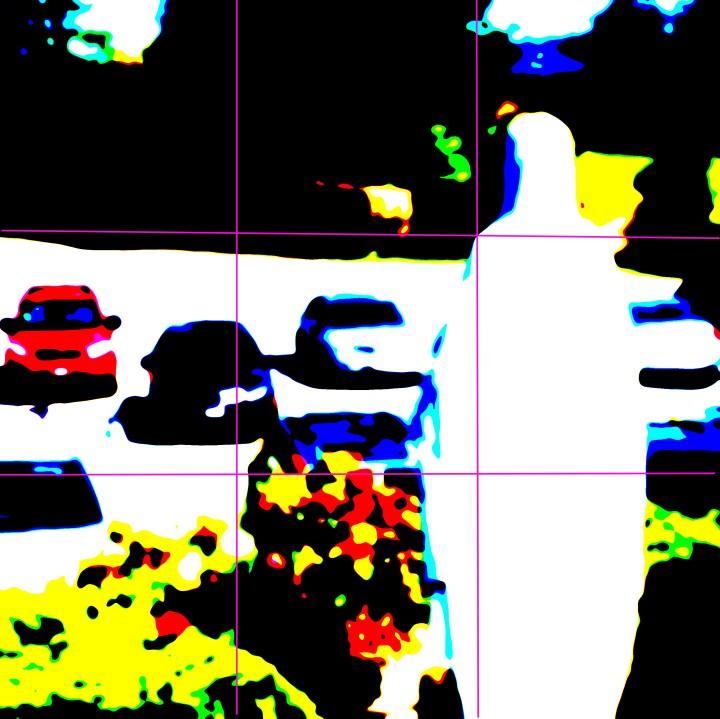 As weird as this looks, it has helped me see aspects of the image that I would not have had I just used the original photo as my source. Below you see the final polarization that I will use as my source to paint over the canvas you see above. It’s pretty close to the original, and the image will become a lot more recognizable.